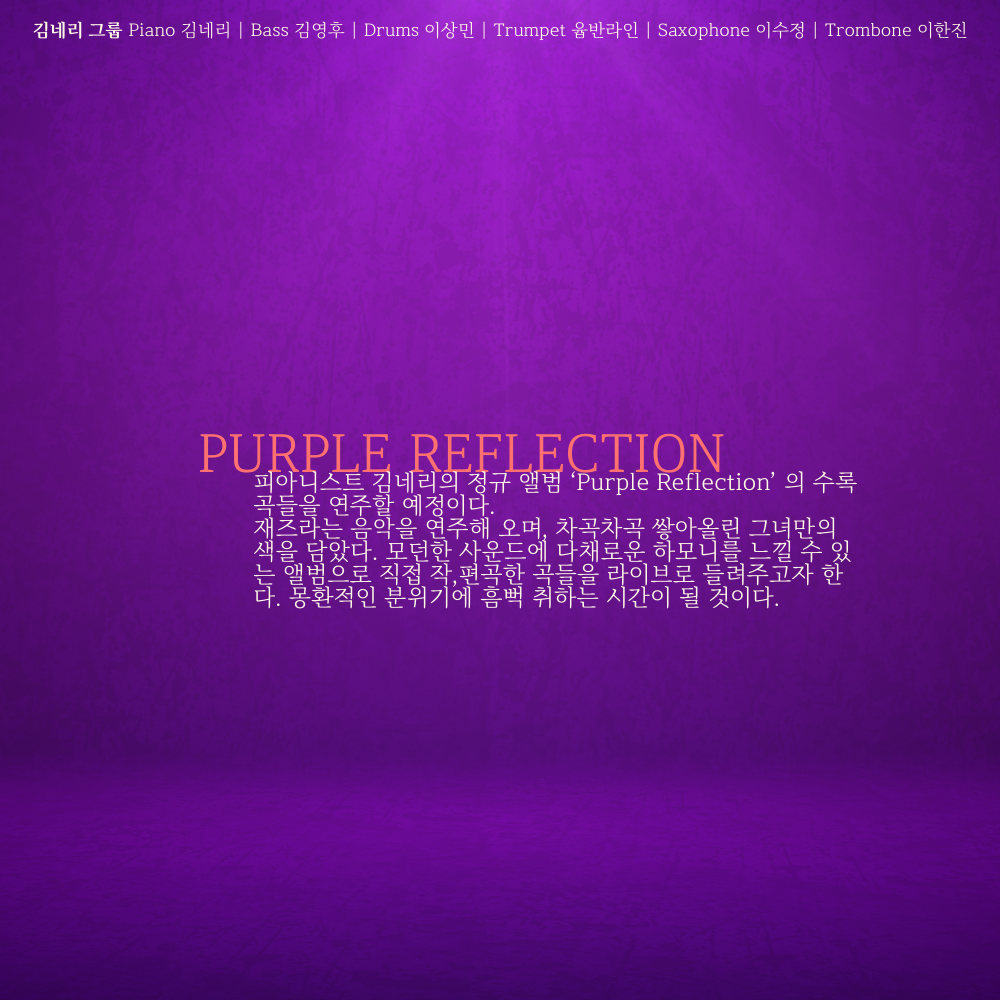 피아니스트 김네리의 정규 앨범 ‘Purple Reflection’ 의 수록곡들을 연주할 예정이다.